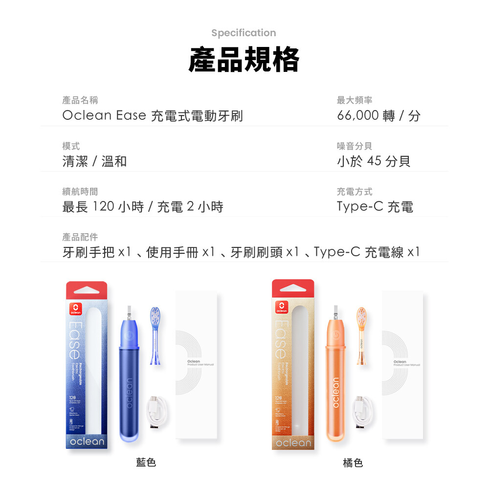 Oclean Ease 輕巧版充電式電動牙刷(兩色)