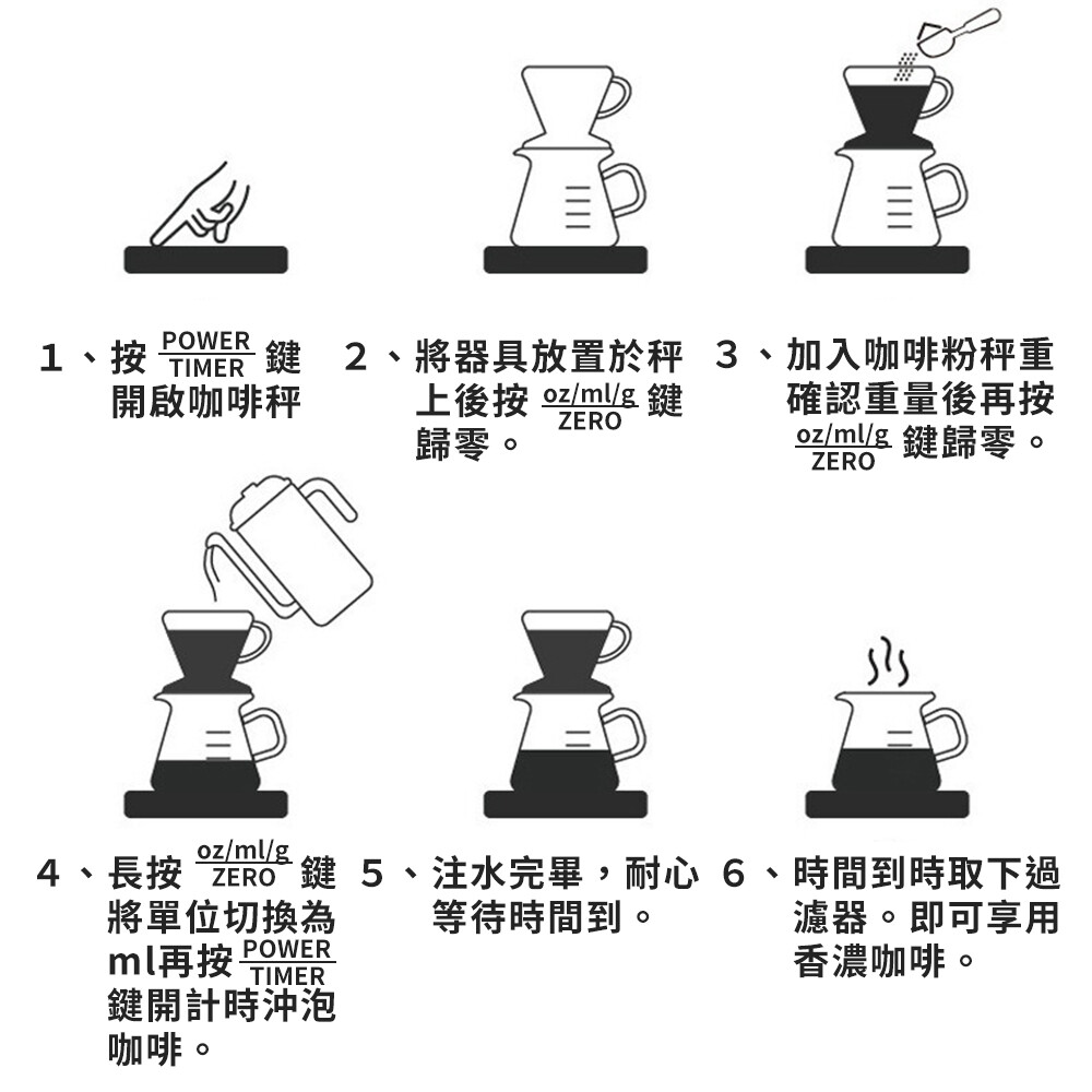 6、計時器整合操作:可手動或自動計時,搭配重量變化同步掌握注水節奏。