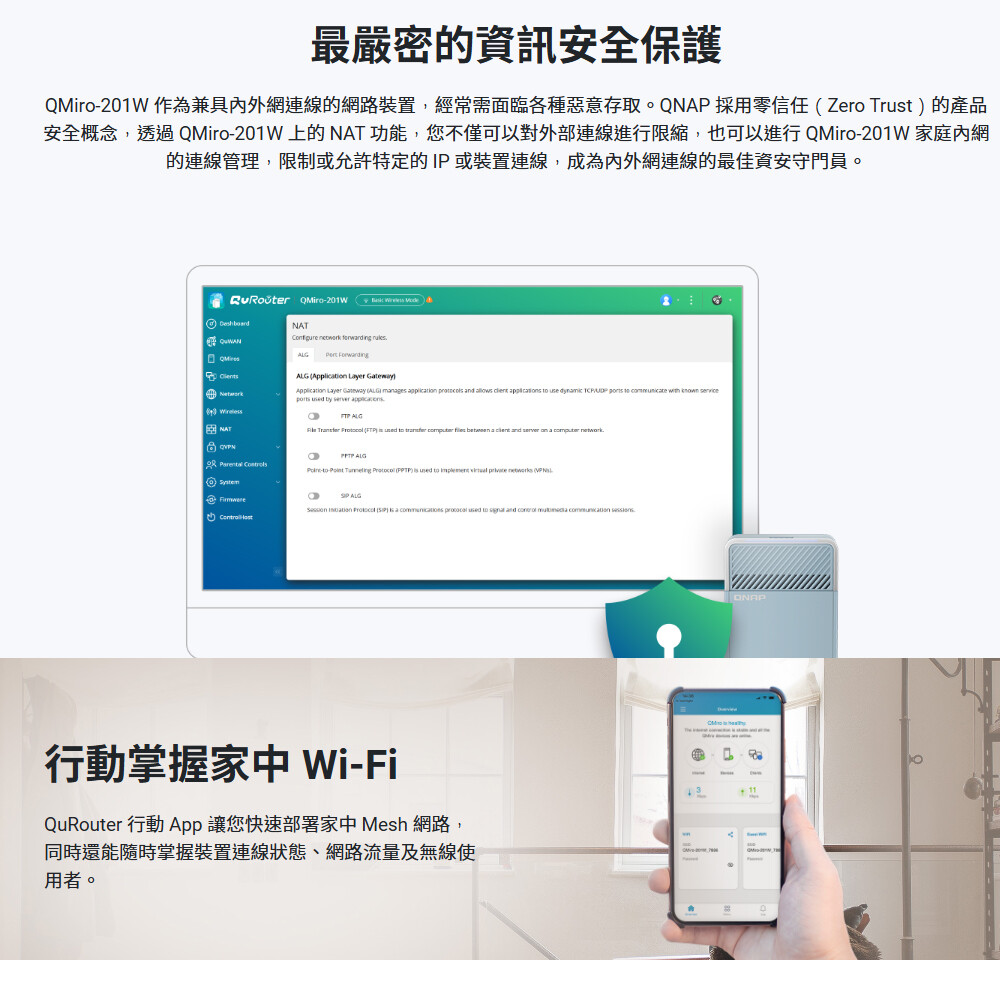 支援 QTS/QuRouter 雙系統,搭載家庭雲 2.0 方案,同時享有更簡易的 NAS 功能及路由設定。
