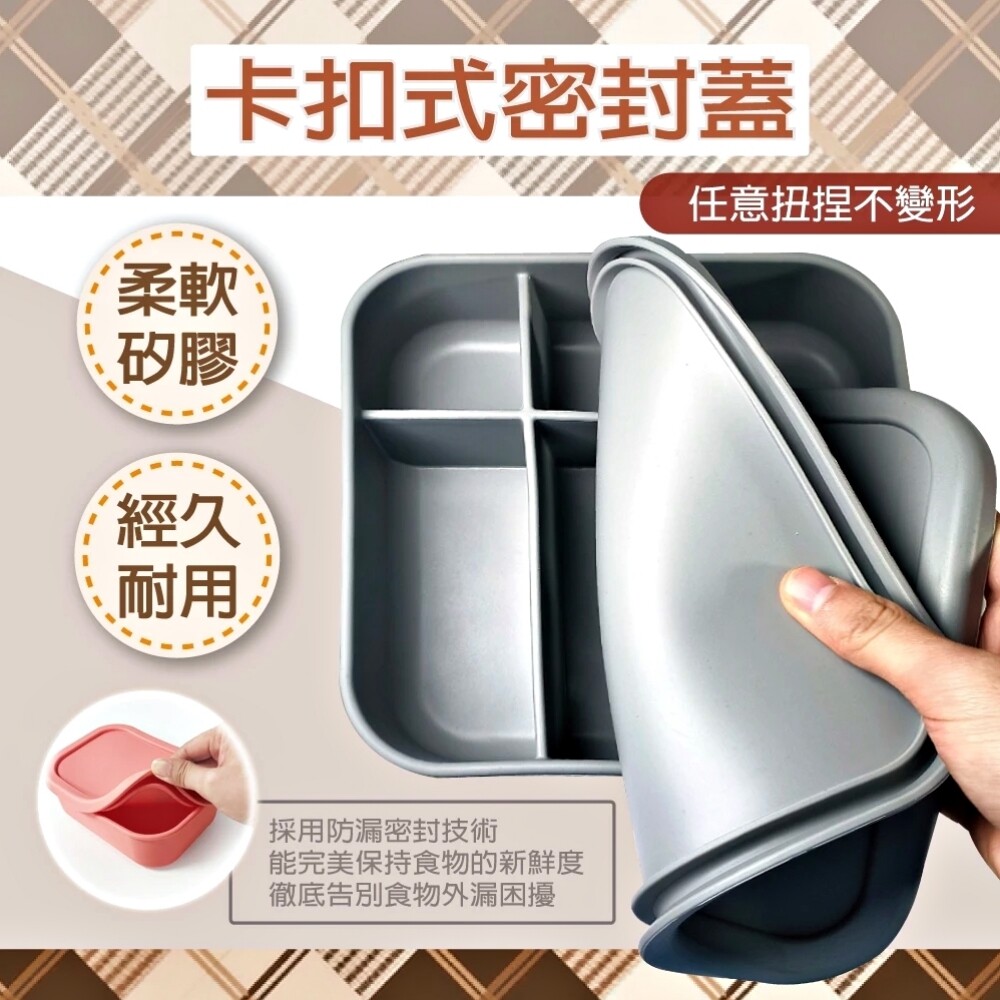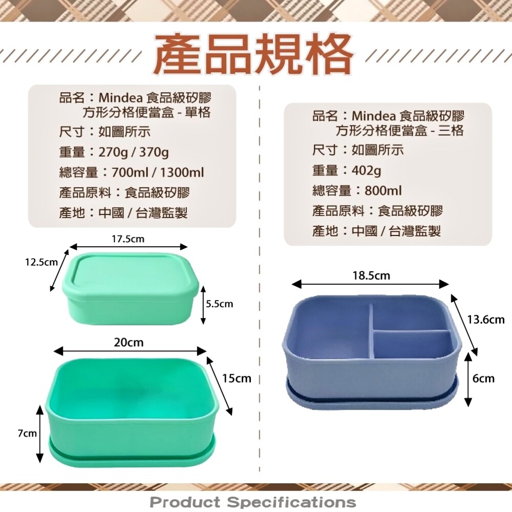 Mindéa 食品級矽膠方形分格便當盒 800ml 三格