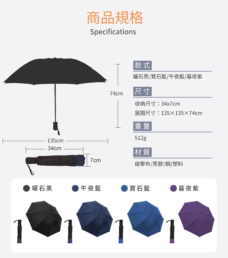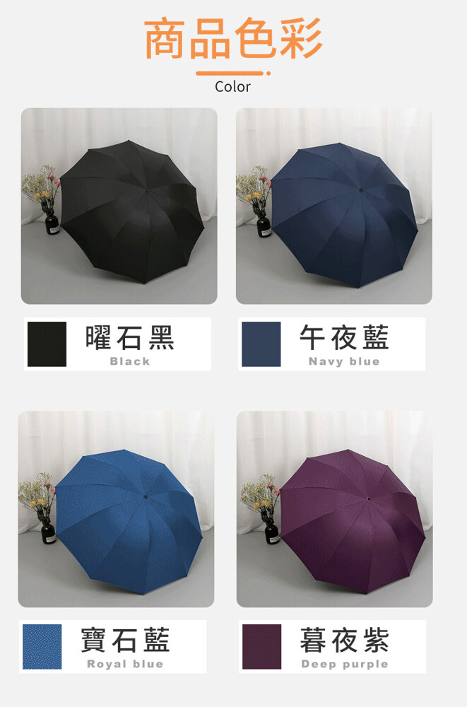 商品款式:耀石黑/寶石藍/午夜藍/暮夜紫(10骨加大傘面)