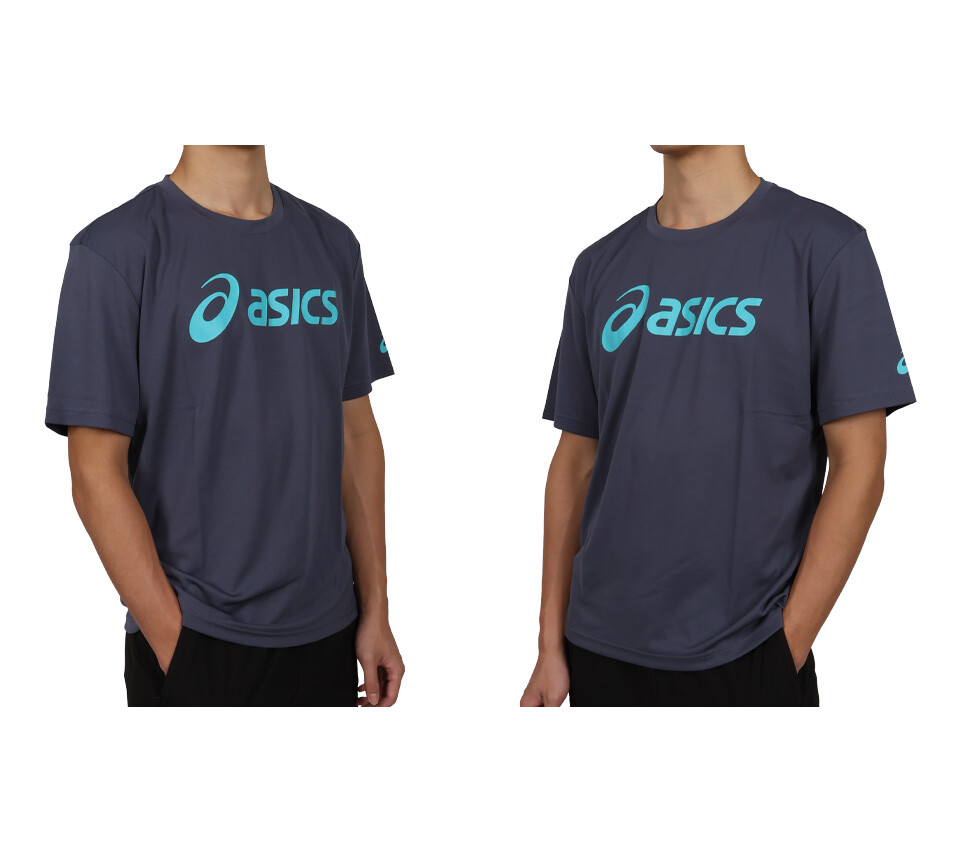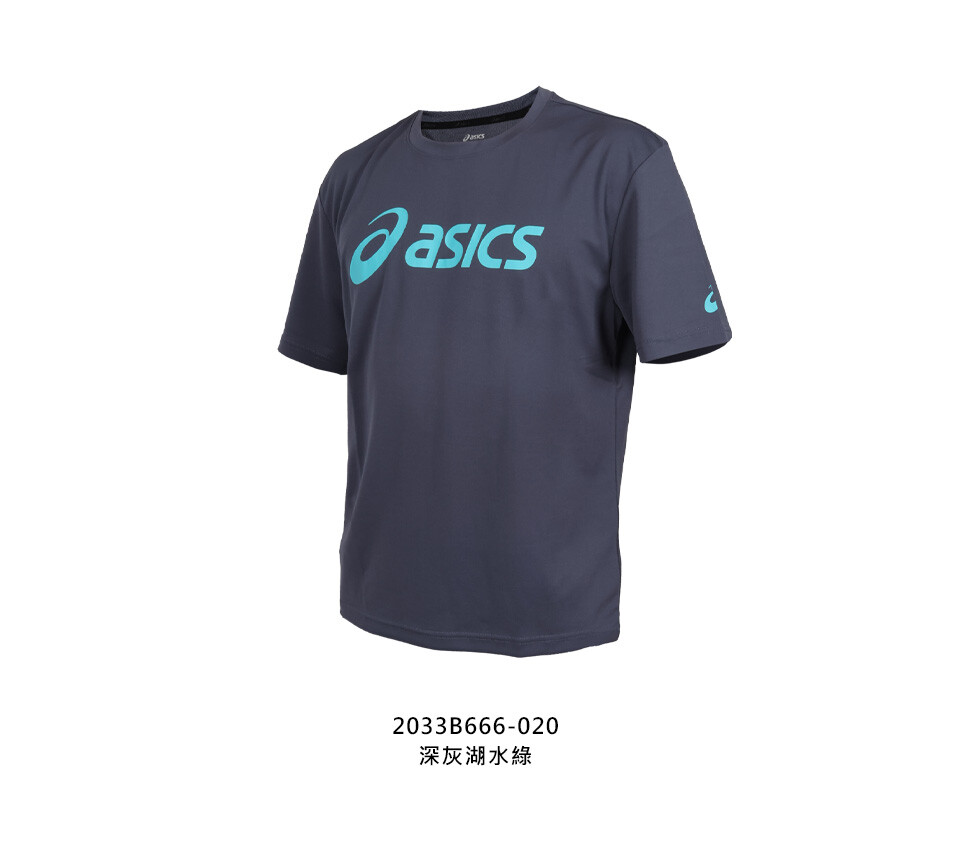 ASICS 男短袖T恤-台灣製 吸濕排汗 運動 上衣 休閒 深灰湖水綠
