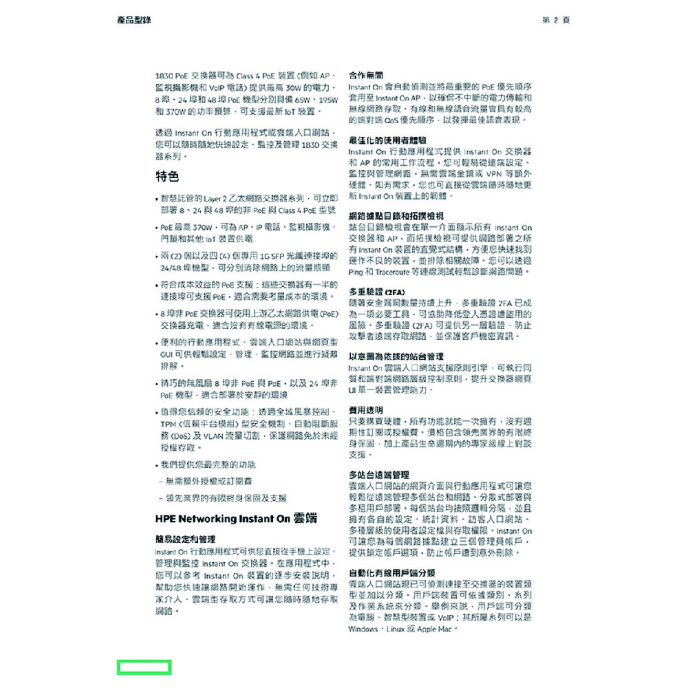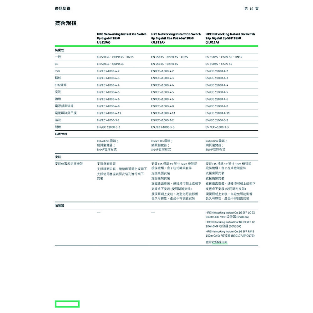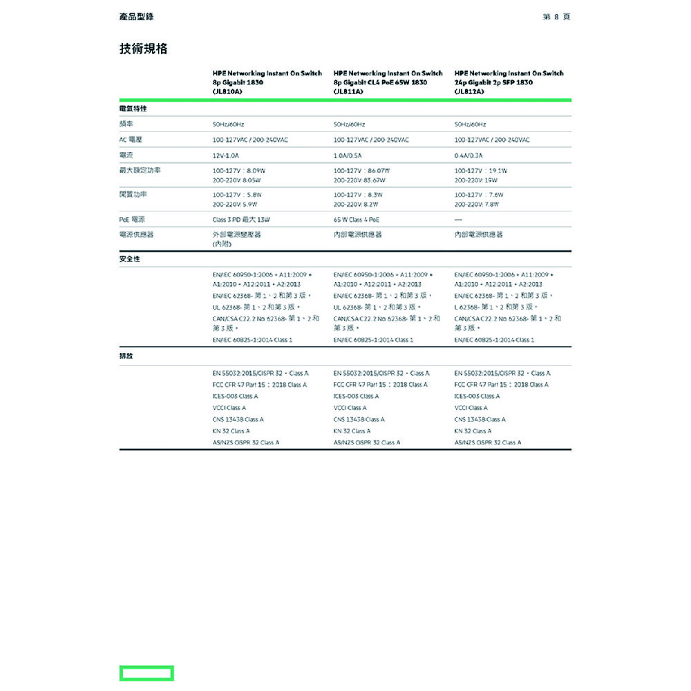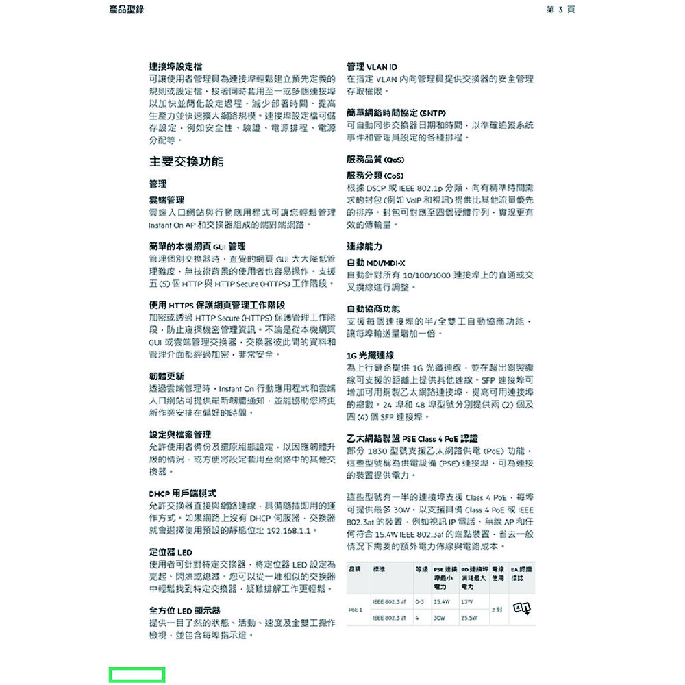 Gigabit 銅線連接埠:8;Class 4 PD (連接埠 1 到 4)