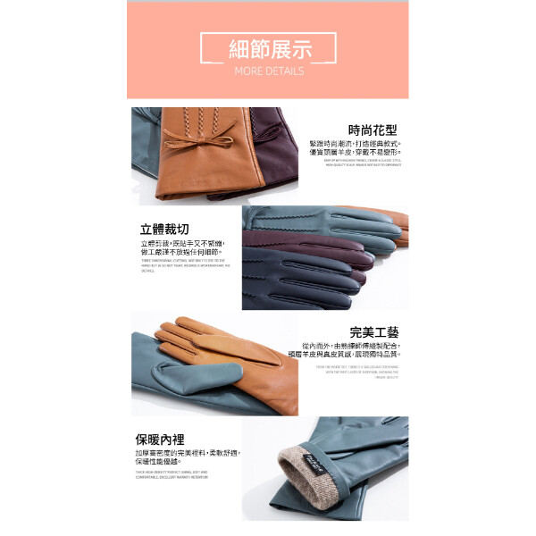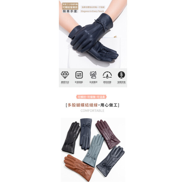 商品名稱:【喜番屋】真皮羊皮可觸碰螢幕女士騎車手套-多股蝴蝶結【LGL13】