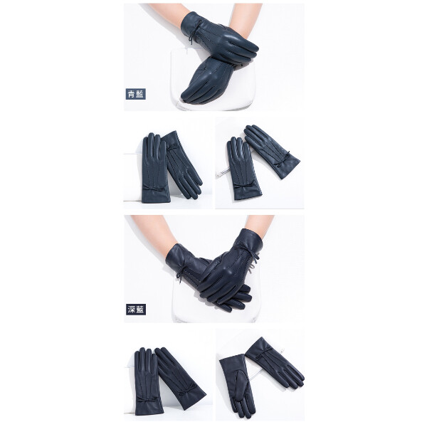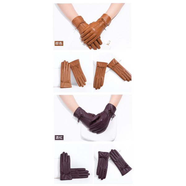 【喜番屋】真皮羊皮可觸碰螢幕女士騎車手套-多股蝴蝶結【LGL13】