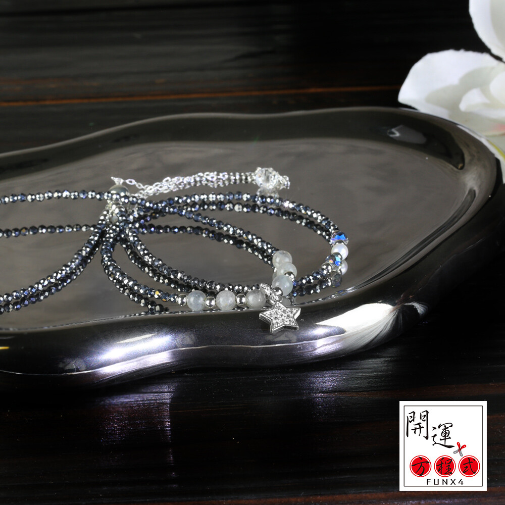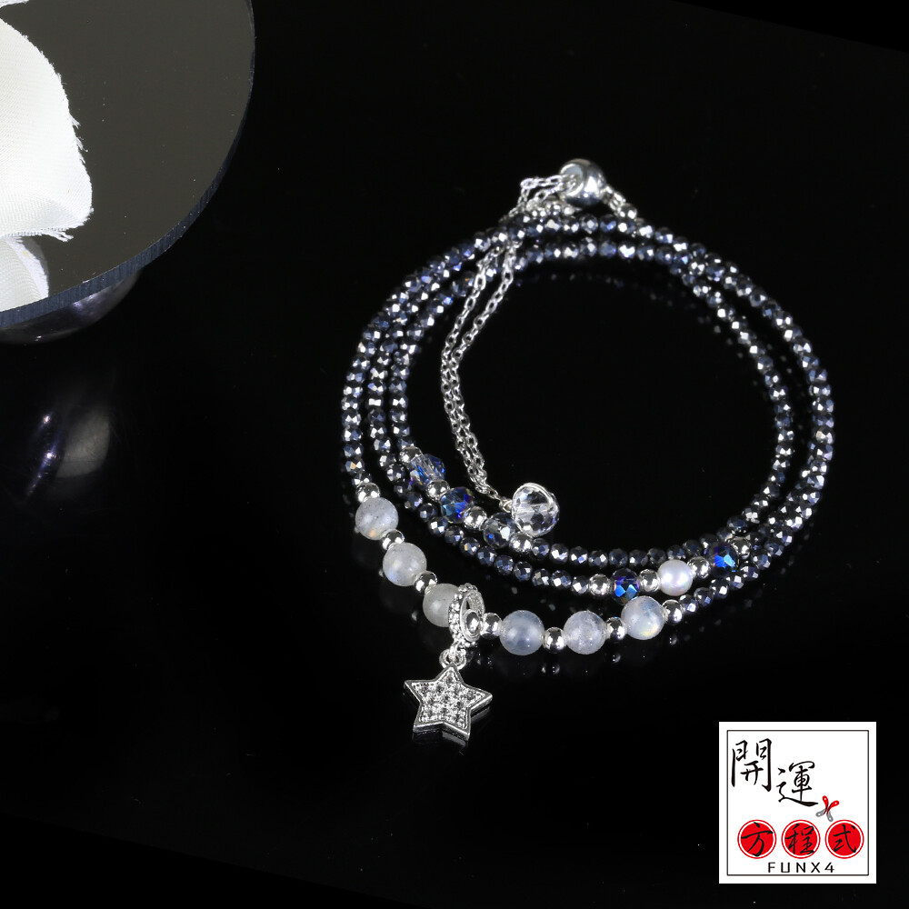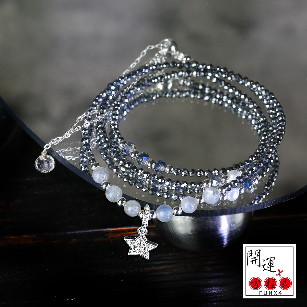 鈦赫茲雙圈:5mm月光石手珠+2mm切角手鍊 手圍:16cm