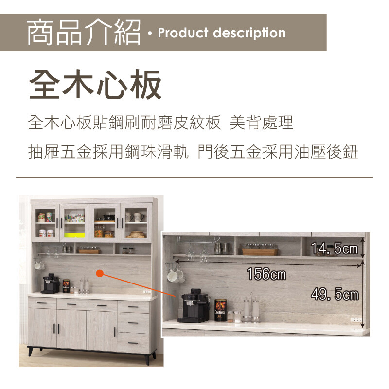 《奈斯家具Nice》279-02-HA 麥莉雅白橡木5.3尺仿石面碗盤櫃組/餐櫃