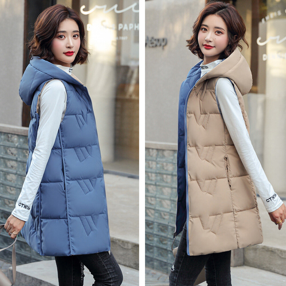 韓版雙面穿中長版羽絨棉背心(KDCQ-2162)
