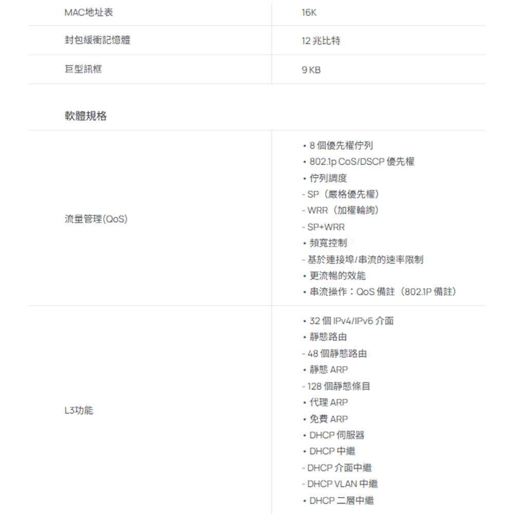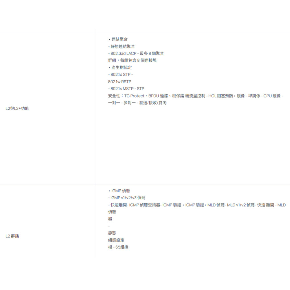 -強大的安全性策略:IP-MAC-連接埠綁定、ACL、連接埠安全、DoS防禦、風暴控制、DHCP偵聽、802.1X、Radius驗證等。