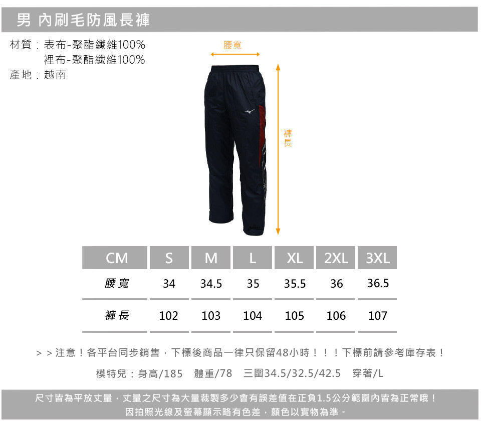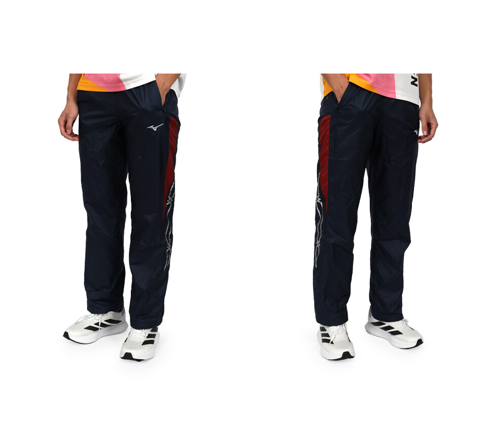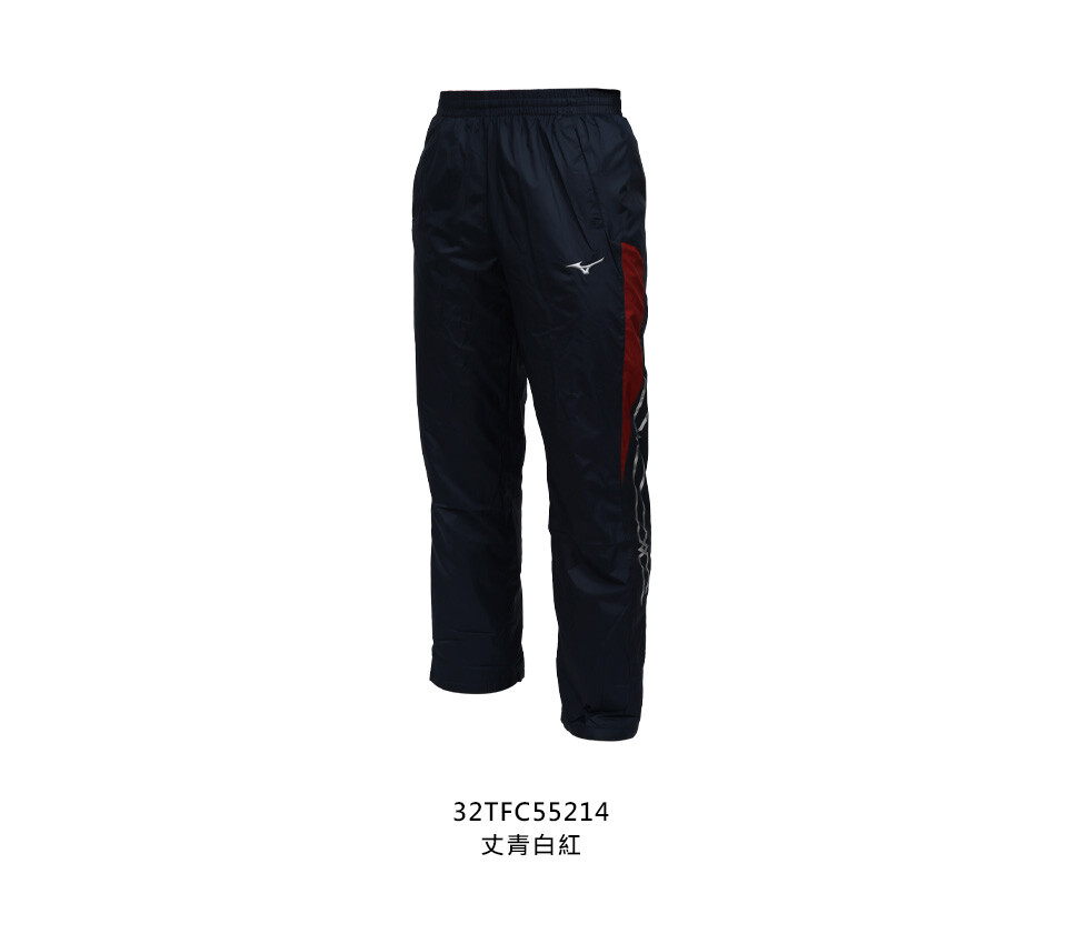 MIZUNO 男內刷毛防風長褲-防潑水 保暖 慢跑 訓練 美津濃 丈青白紅