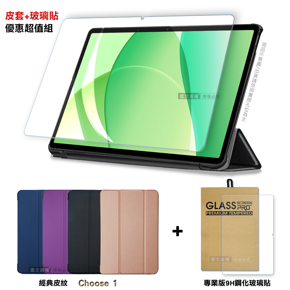 【平板皮套+玻璃貼】標準保護配備 優質特惠套組