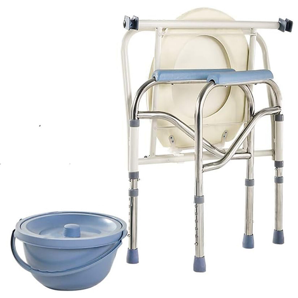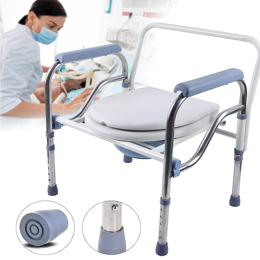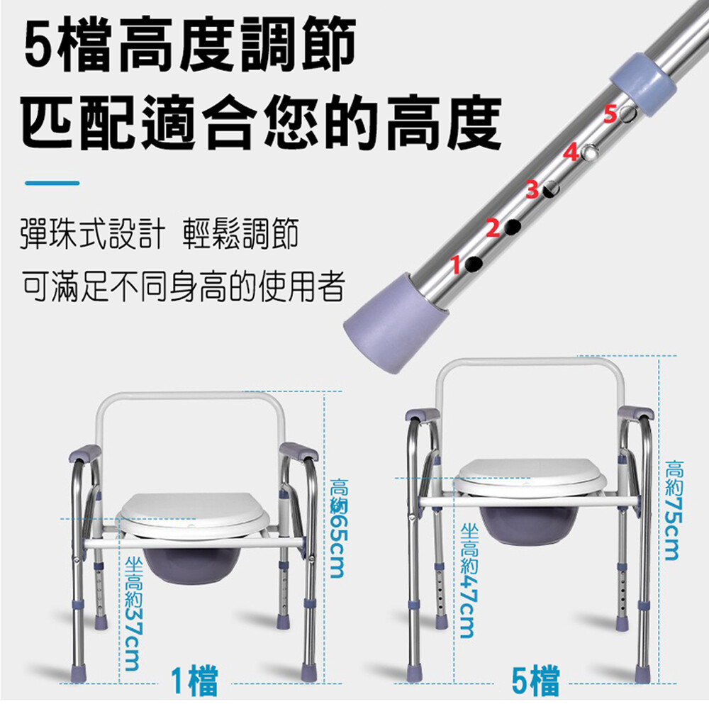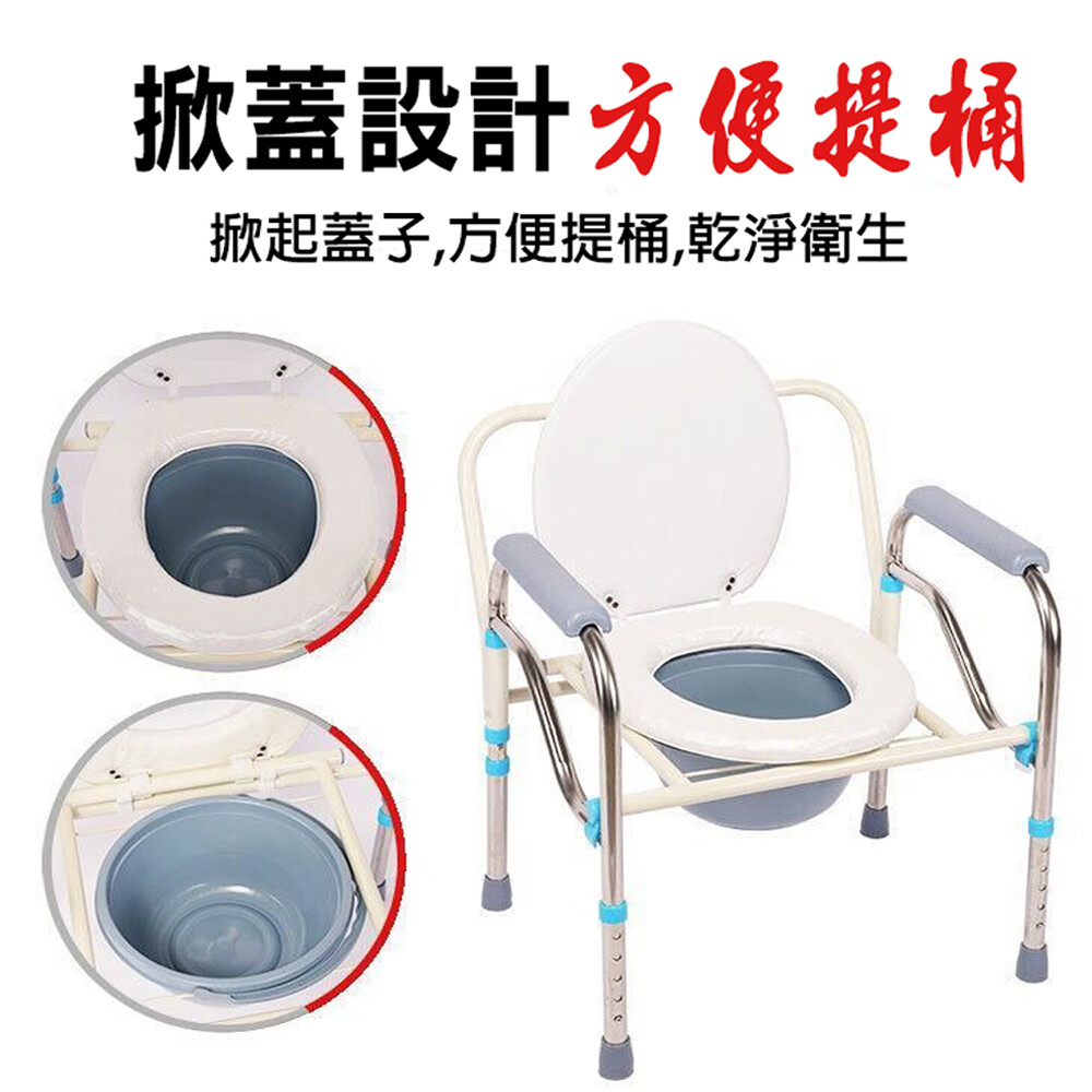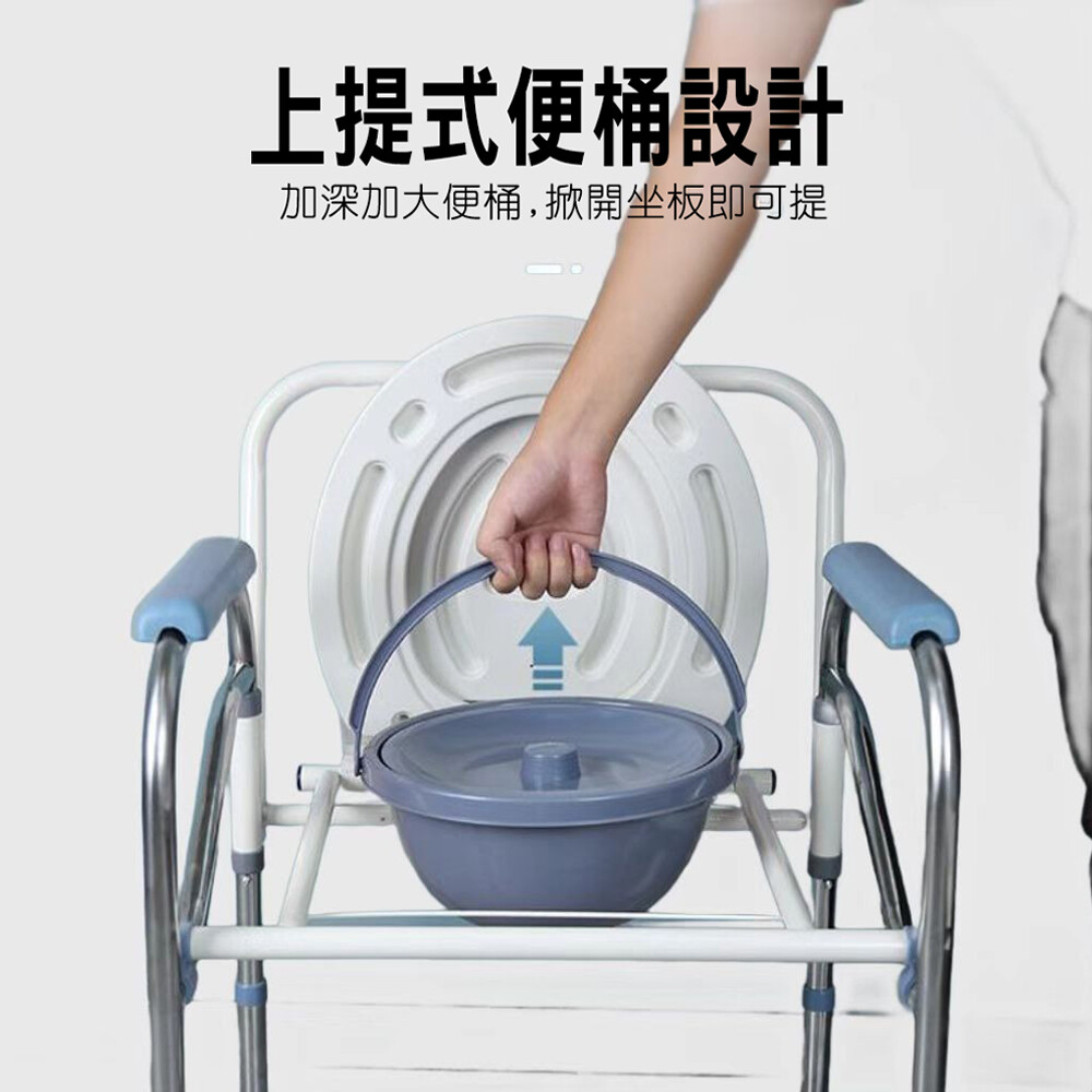 不鏽鋼雙扶手可移動防水折疊坐便椅五檔可調高度