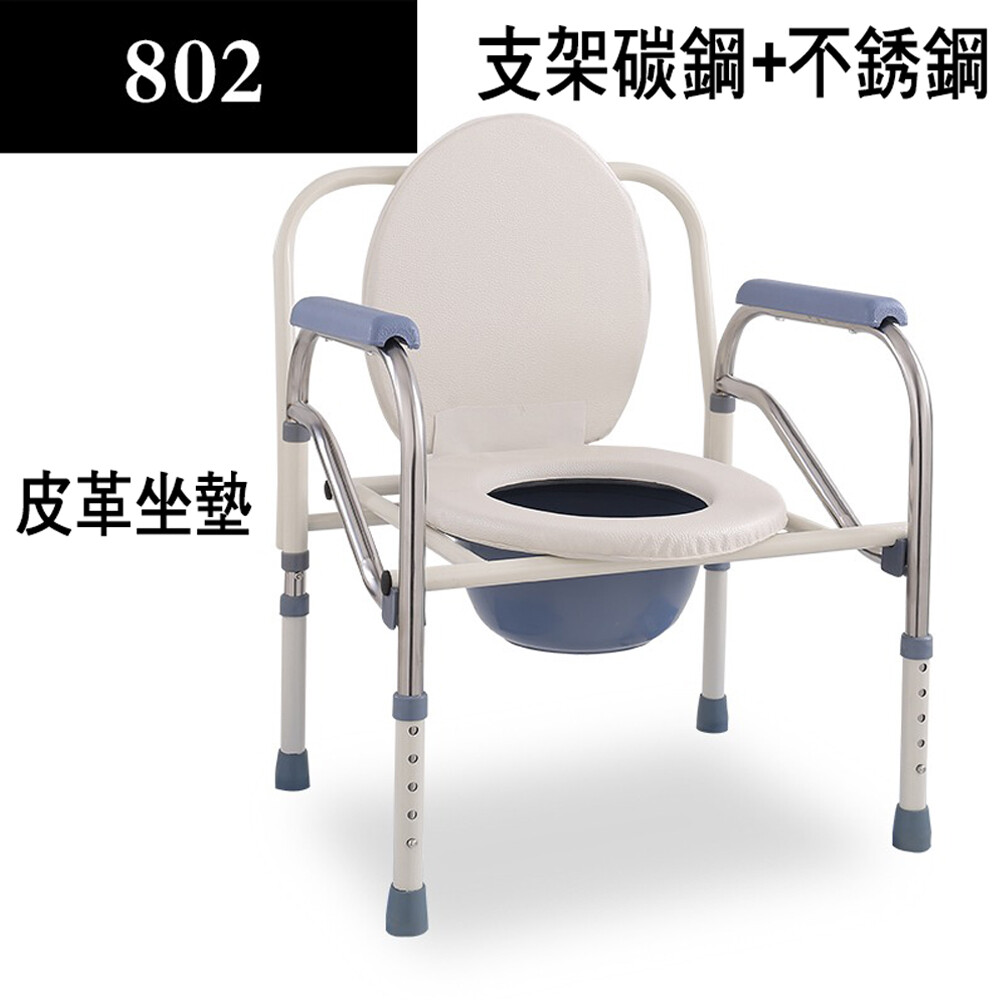 材質:加厚不鏽鋼管+便桶-塑料+皮革海綿坐墊