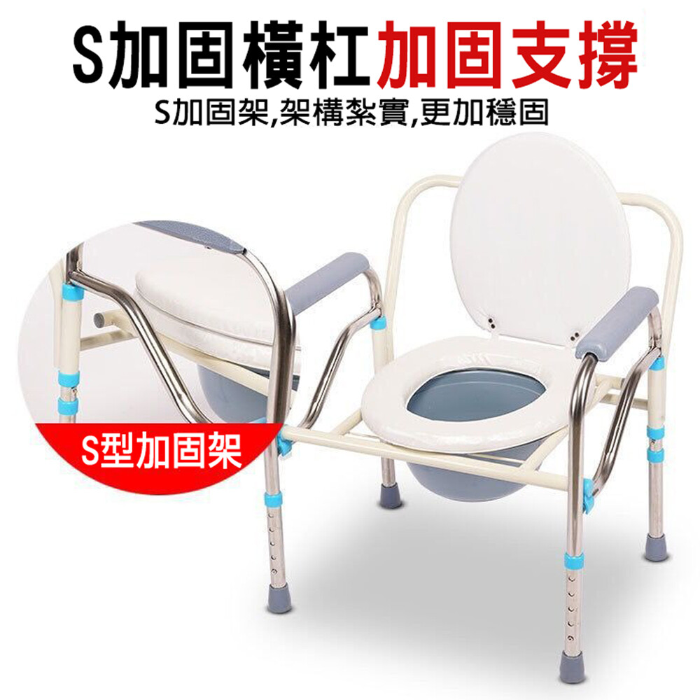 可折疊、帶扶手方便使力、舒適軟坐墊、活動便盆坐便器雙重作用