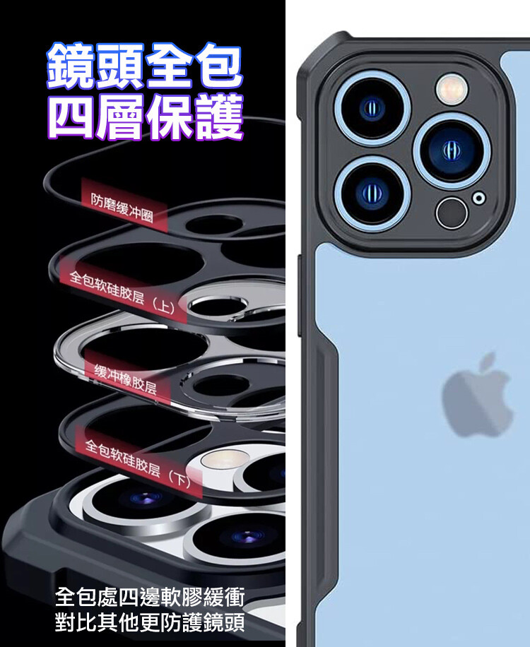 1:1真機開模 孔位精準對應 鏡頭全包軟膠緩衝 四層保護