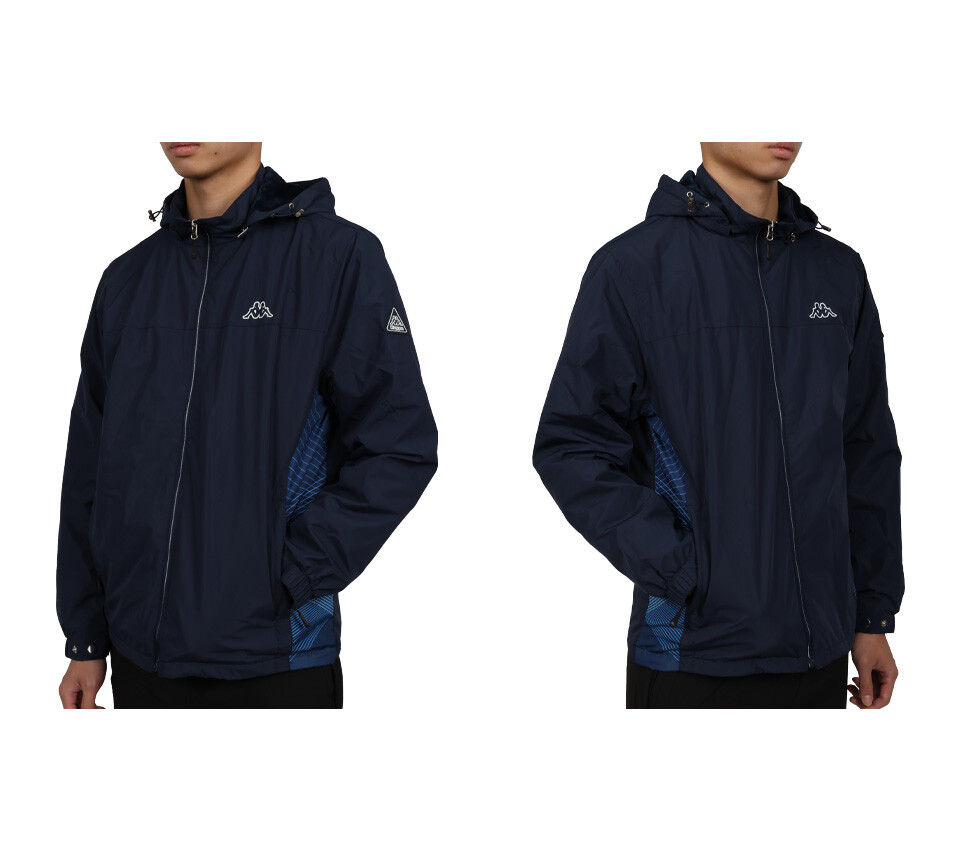 KAPPA 男女平織刷毛外套-防潑水 運動 慢跑 上衣 丈青藍白