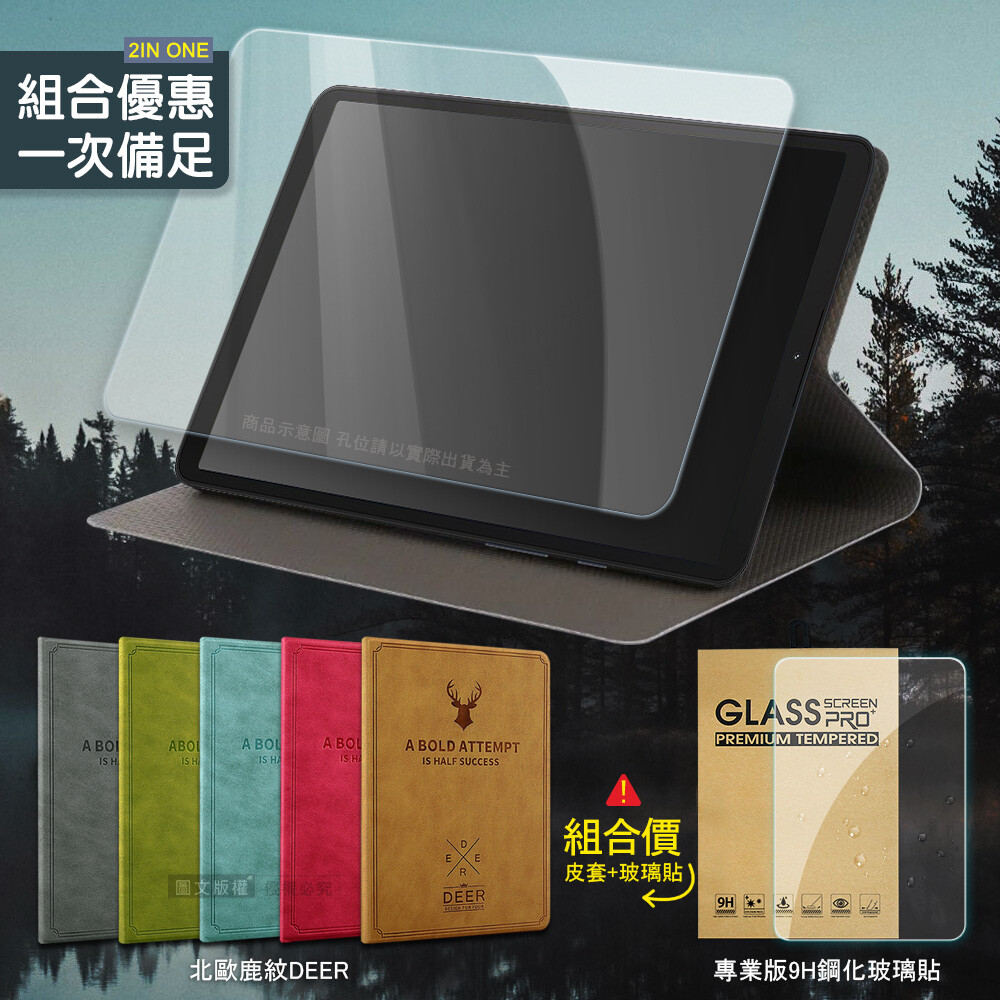 包裝內容物:VXTRA北歐鹿紋保護套 x1 + 9H鋼化玻璃貼 x1