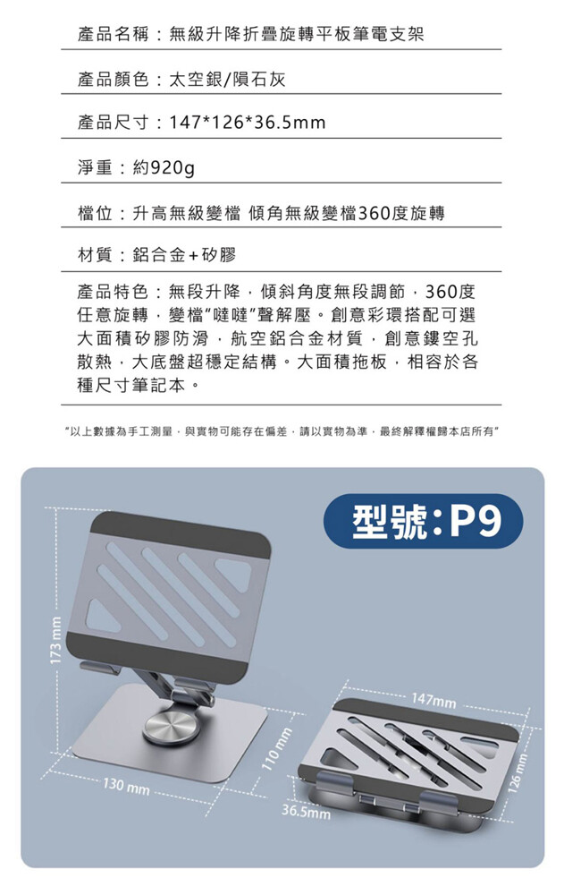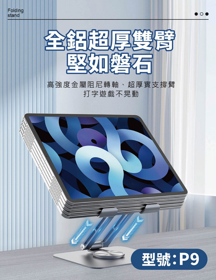 CITY BOSS P9 平板折疊升降桌架 360度旋轉 折疊自由升降 散熱孔設計