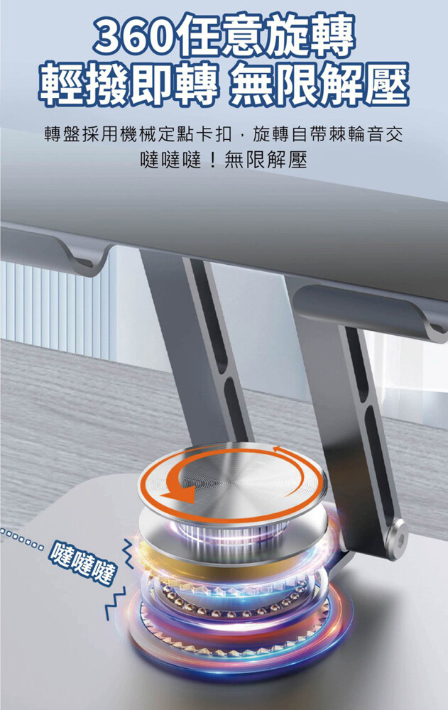360任意旋轉 輕撥即轉 無限解壓 - 轉盤採用機械定點卡扣,旋轉自帶棘輪音交 噠噠噠! 無限解壓。