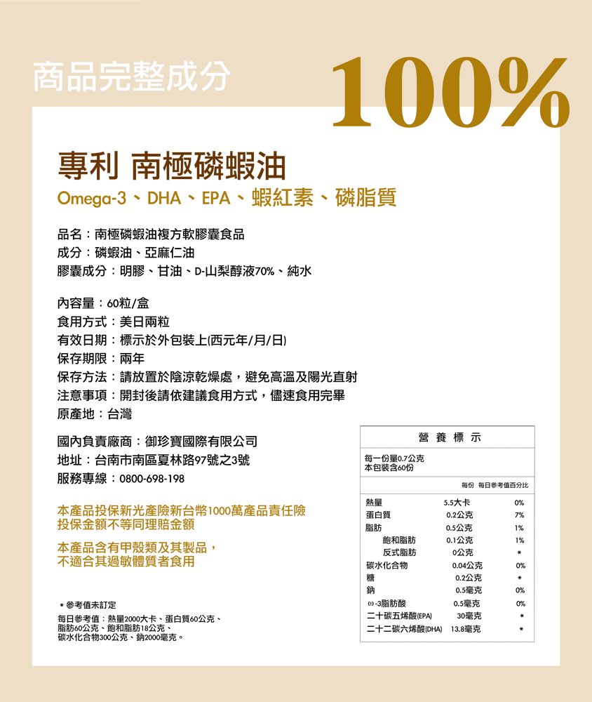 .富含Omega-3、DHA、EPA、蝦紅素、磷脂質