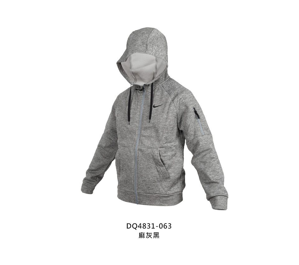 NIKE 男連帽休閒外套-THERMA-FIT 上衣 休閒 麻灰黑
