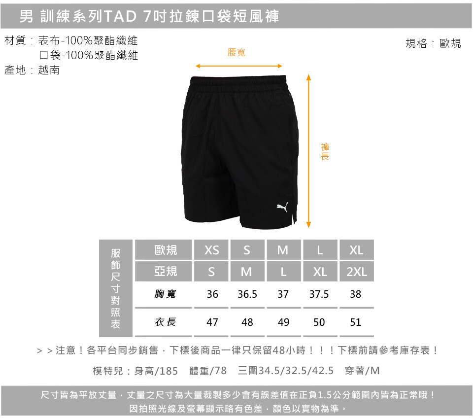 PUMA 男訓練系列TAD 7吋拉鍊口袋短風褲-五分褲 慢跑 訓練 黑白
