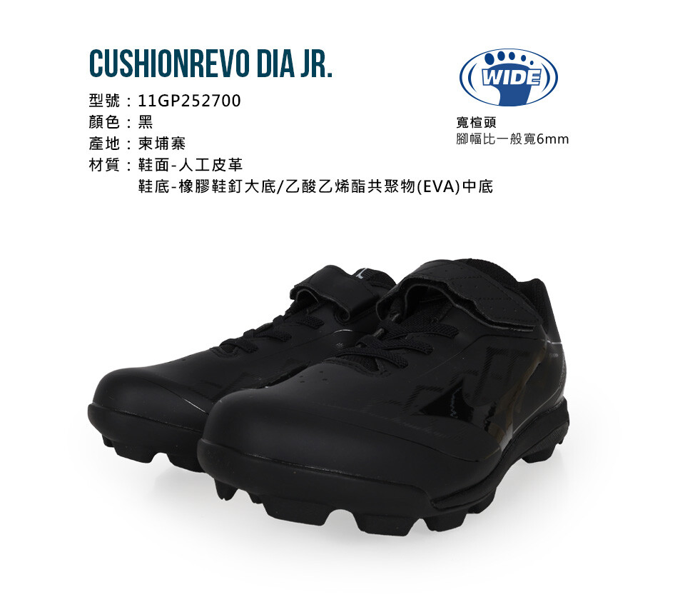 MIZUNO CUSHIONREVO DIA JR. 男兒童棒壘球鞋-3E-寬楦 黑