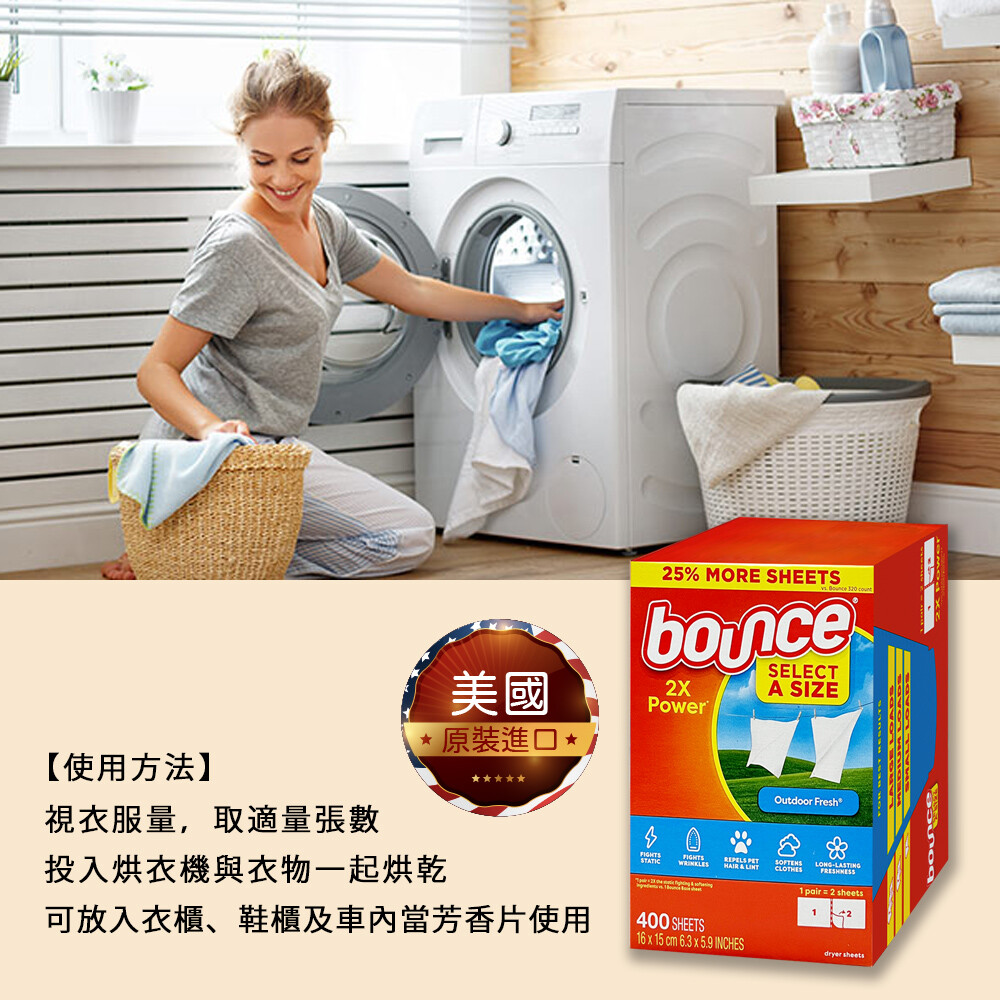 美國原裝進口【BOUNCE】烘衣柔軟片400片