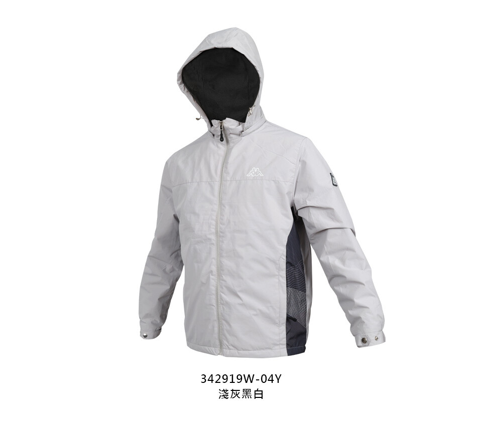 KAPPA 男女平織刷毛外套-防潑水 運動 慢跑 上衣 淺灰黑白
