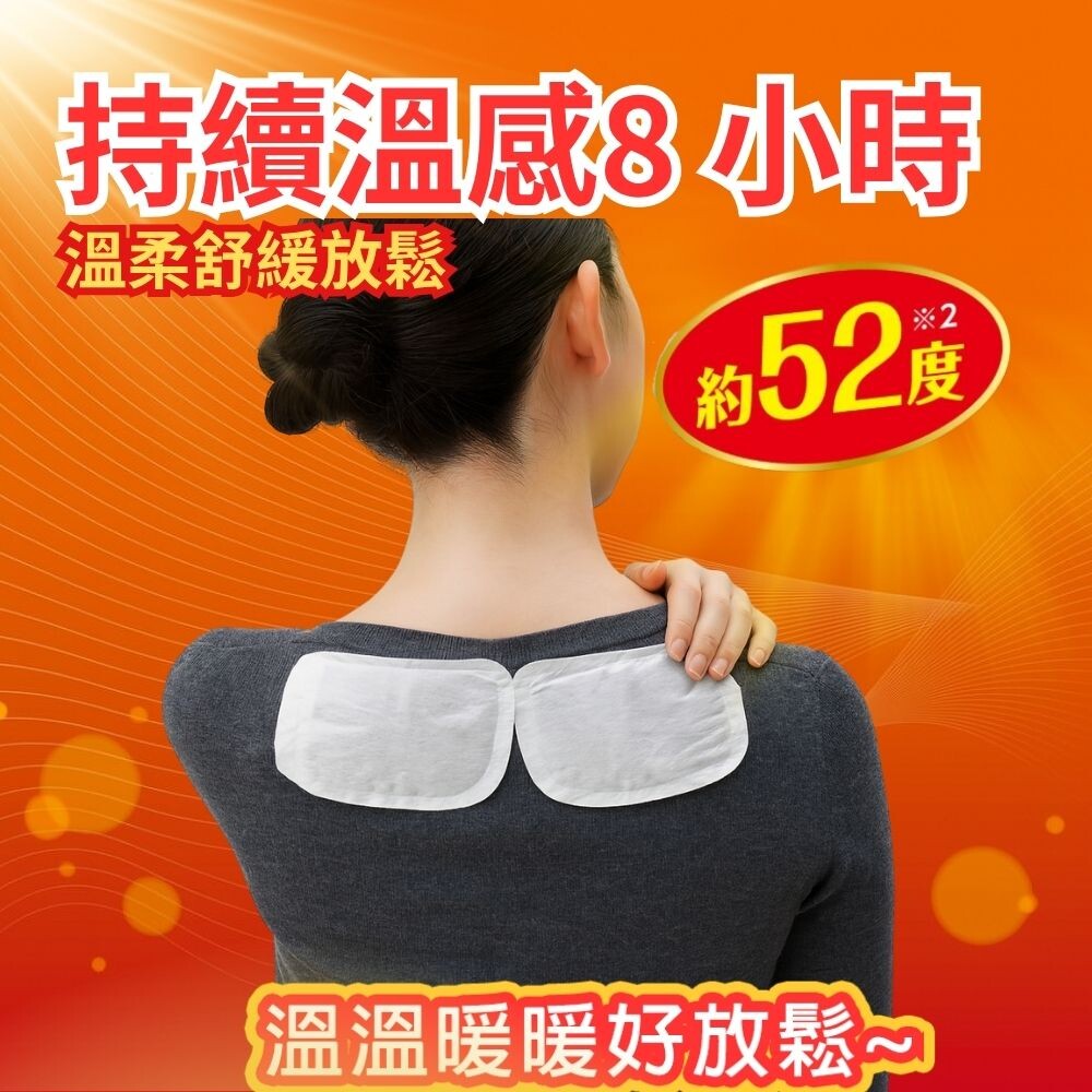 約 52°C 的穩定熱度,貼在衣物外即可感受舒服的溫感,讓身體自然放鬆,維持柔和舒適的一天。
