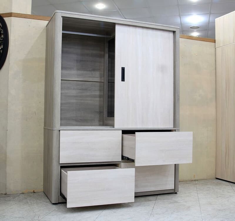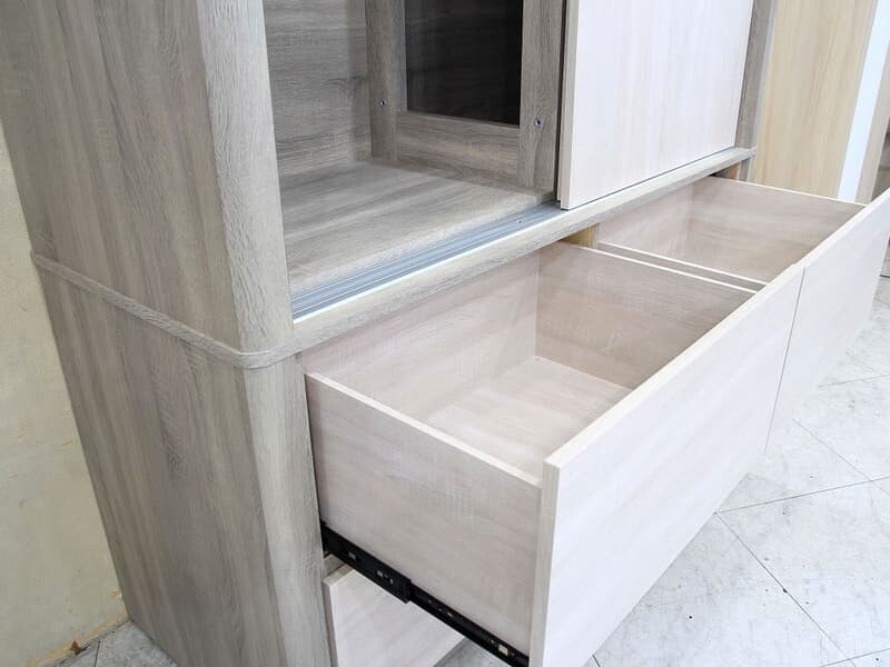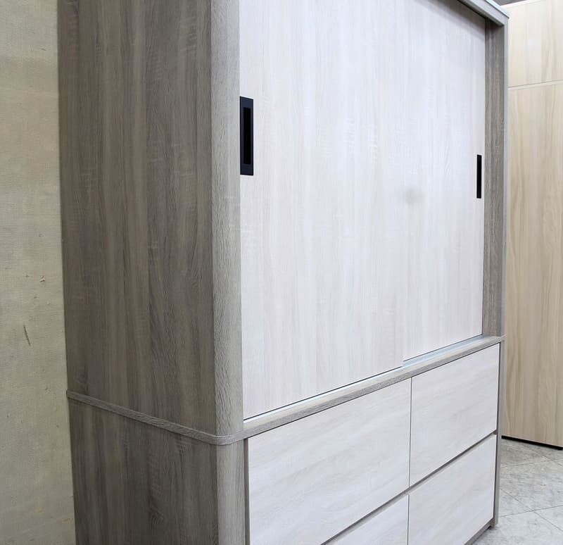 | 材質 | 板材 : 桶身,天板 ,門板皆為木心板材 , 堅固耐用 塗裝 : 淺灰橡+白梧桐色耐磨木皮 , 二邊大圓弧彎角質感細緻 五金 : 抽屜採迴歸式鋼珠滑軌 , 門片內嵌黑鐵把手 |