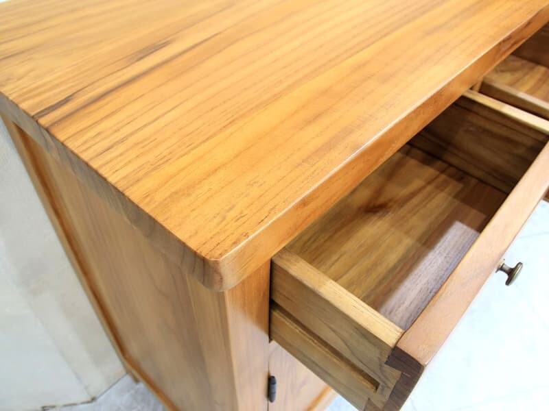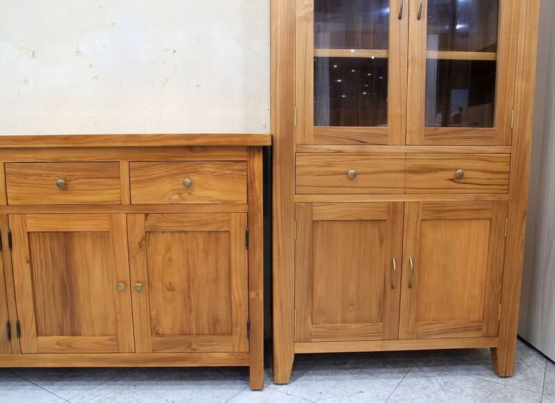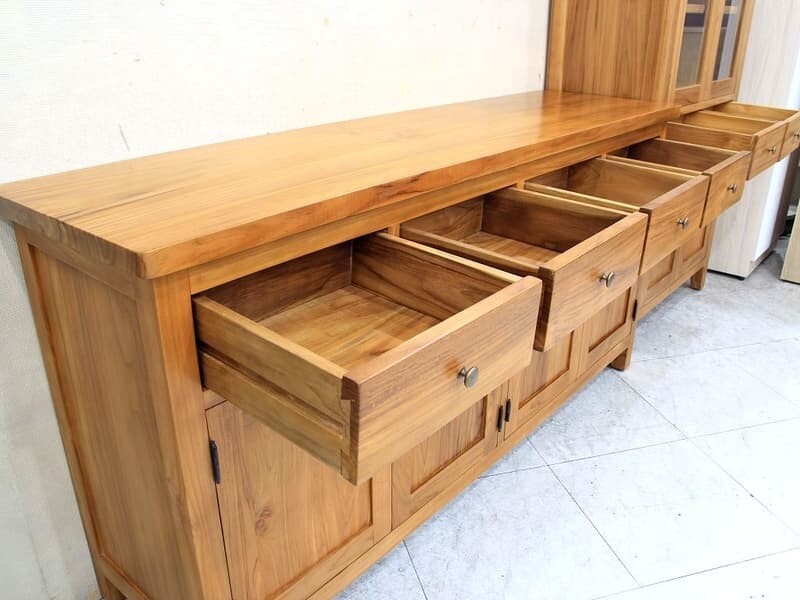 | 材質 | 板材 : 100%印尼柚木全實木材質,骨架厚實堅固耐用 塗裝 : 噴漆倒角做工質感細緻 五金 : 抽屜採木製軌道,門片防塵蓋設計, 門內固定隔板 , 古銅色金屬把手 |