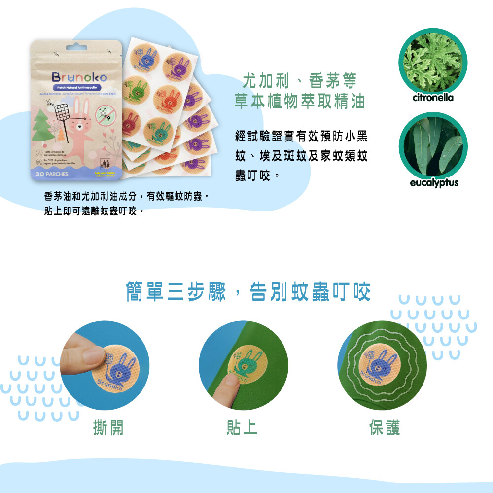 【商品名稱】BRUNOKO 草本精油驅蚊貼片