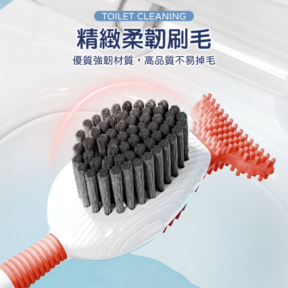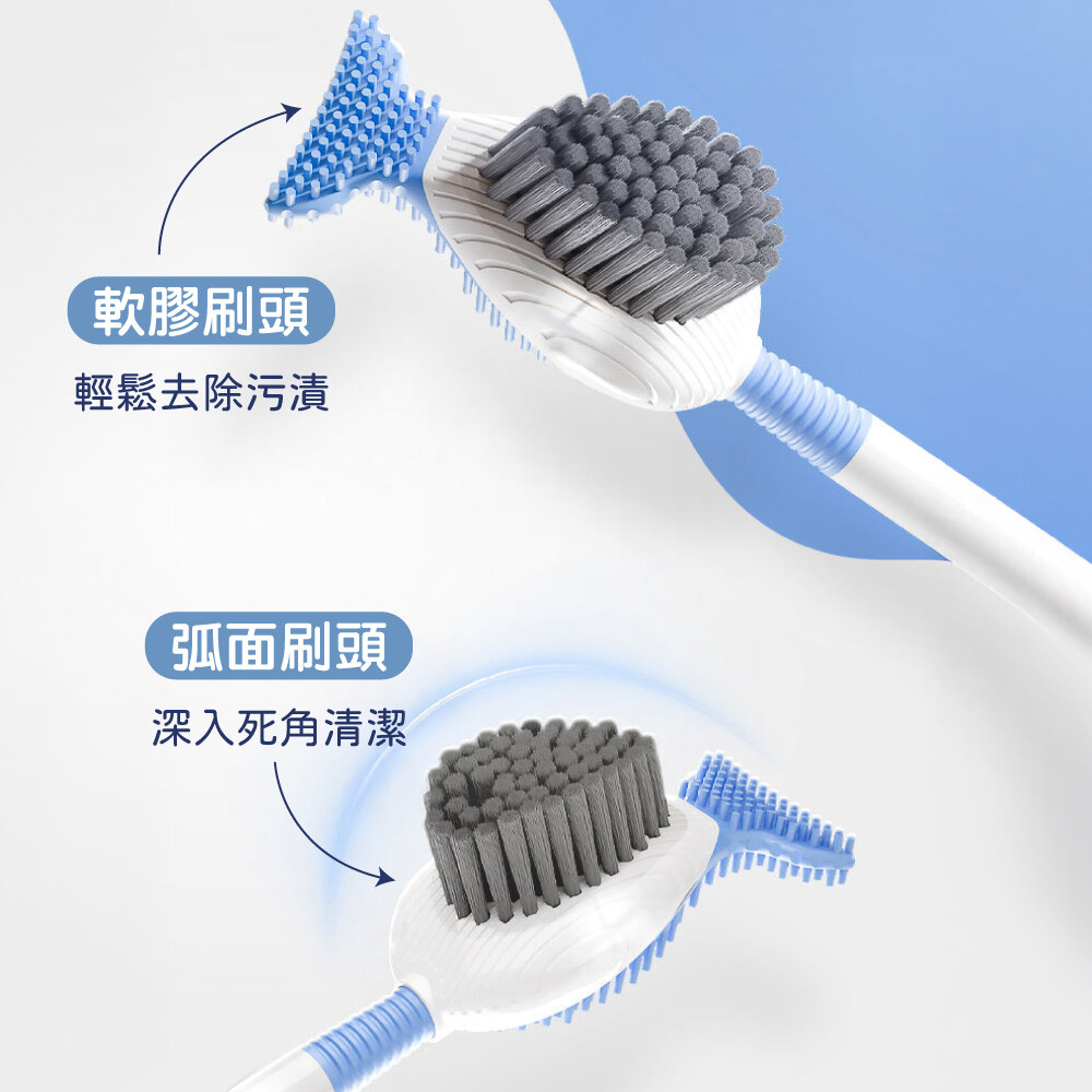 2.魚尾軟膠刷頭+弧面刷毛,深入死角清潔更徹底。