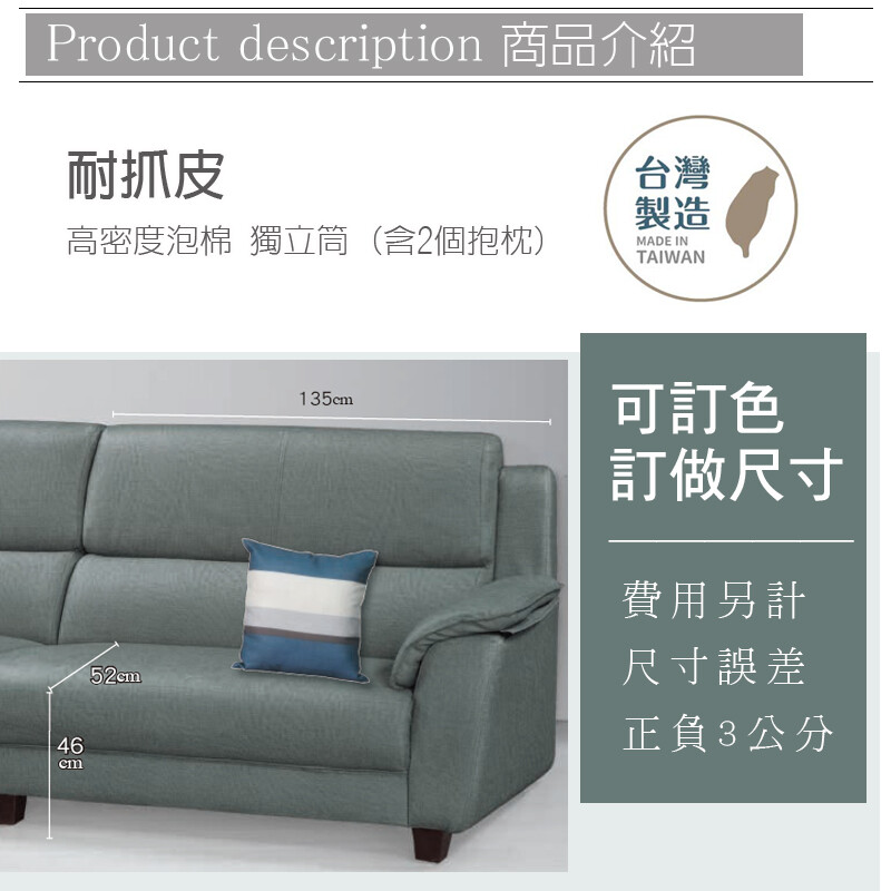 高密度泡棉 鐵腳 貓抓皮沙發 獨立筒