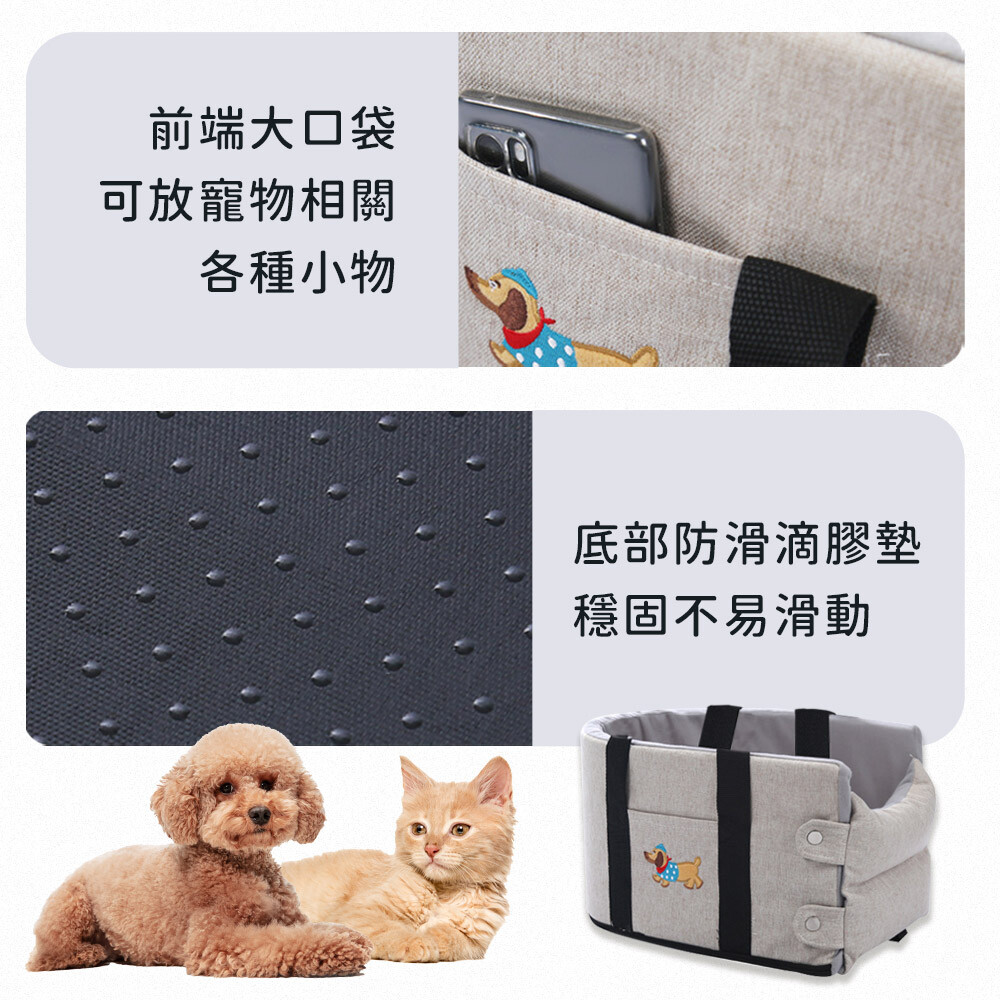 跟毛孩子一起旅遊,汽車中控寵物坐墊,底部可調節綁帶,固定在中控位置,