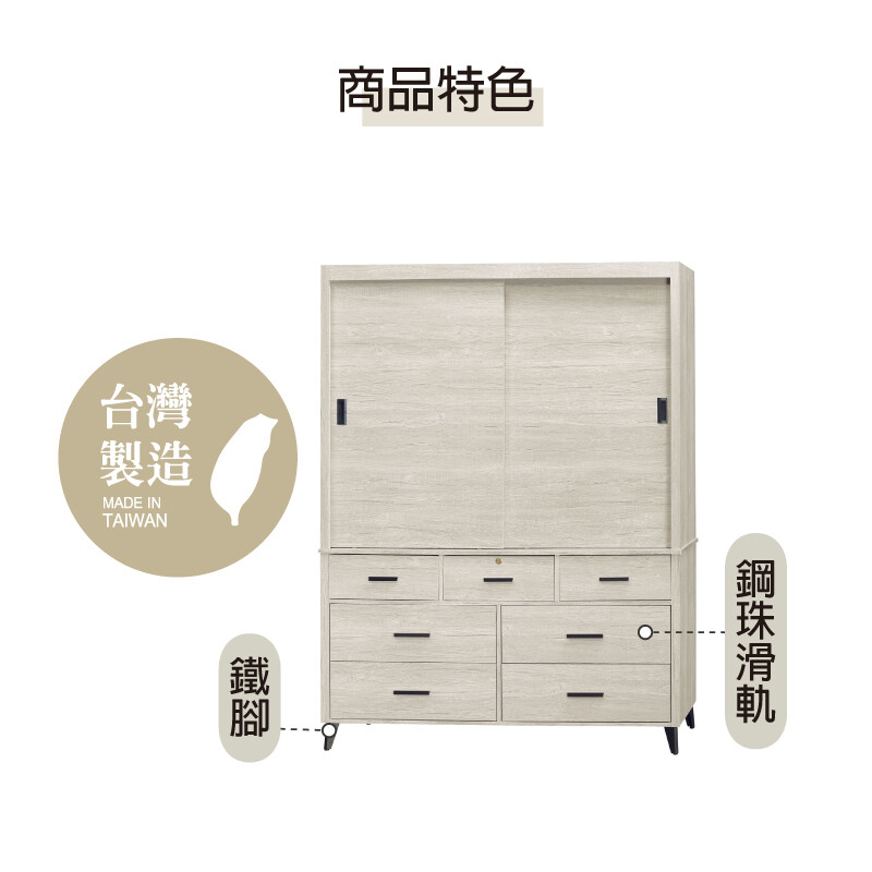 《奈斯家具Nice》187-04-HV 白雪松5×7尺拉門衣櫃/衣櫥/5#