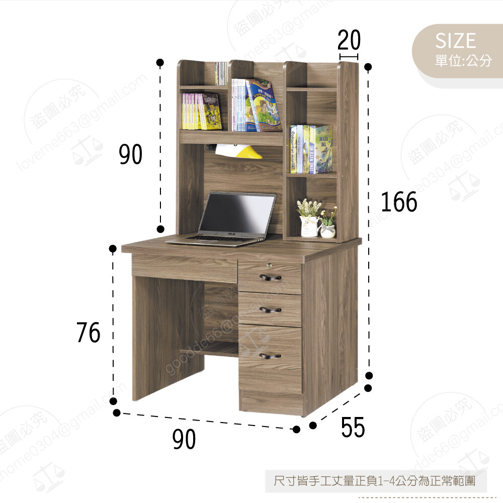 《奈斯家具Nice》259-07-HV #906 灰橡3尺書桌/整組