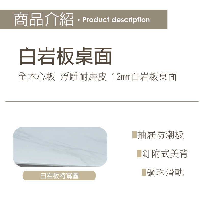 材質全木心板 桌面12mm白岩板 鋼珠滑軌