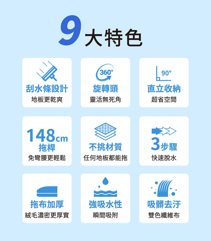 ■360°旋轉拖頭,清潔無死角