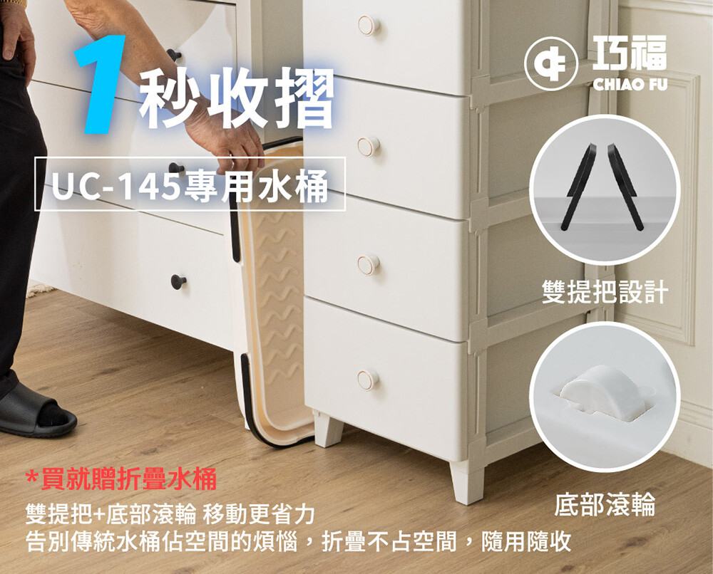 摺疊收納不佔空間,附提把與滾輪方便移動與倒水