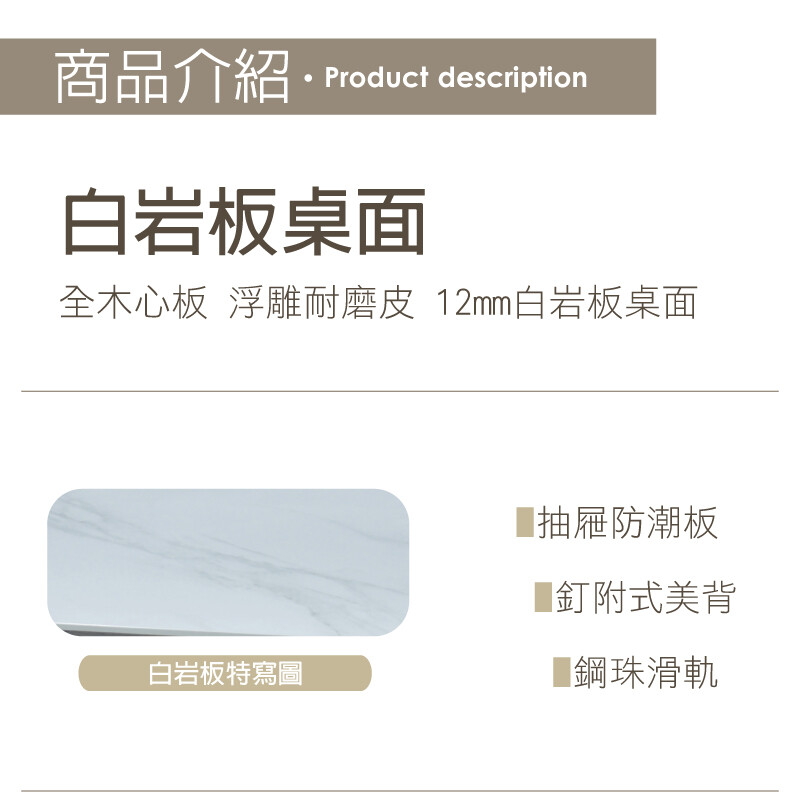 全木心板 桌面12mm白岩板 鋼珠滑軌