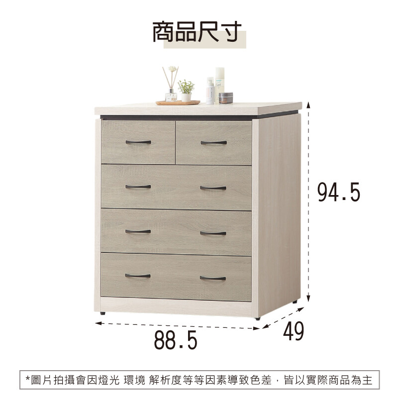 《奈斯家具Nice》089-03-HV 白梧桐+淺灰四斗櫃