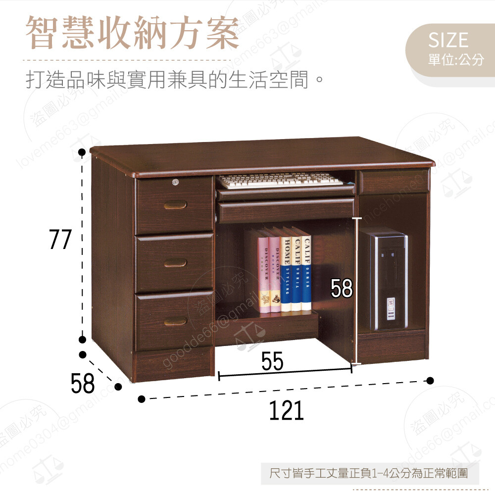 《奈斯家具Nice》262-02-HV 603胡桃色4尺電腦書桌/下座