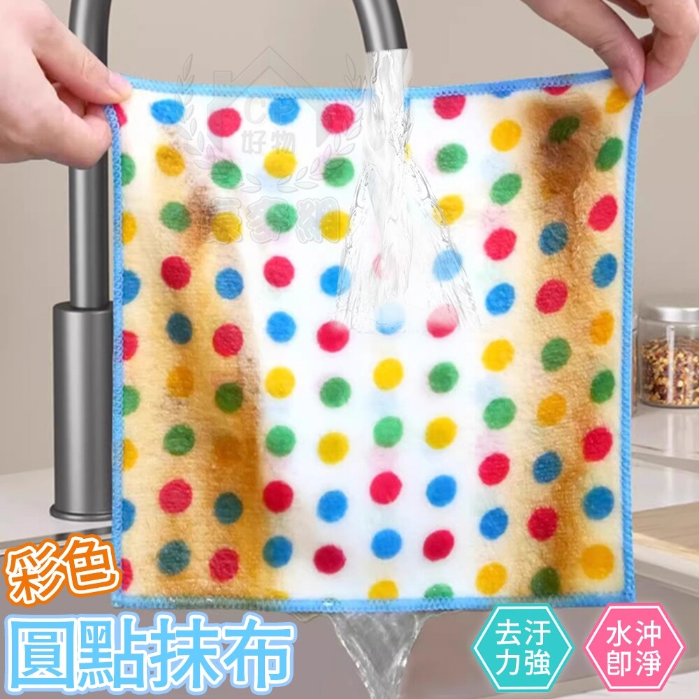 【圓點抹布】廚房彩色圓點抹布 珊瑚絨抹布 去油污清潔布 吸水抹布☆