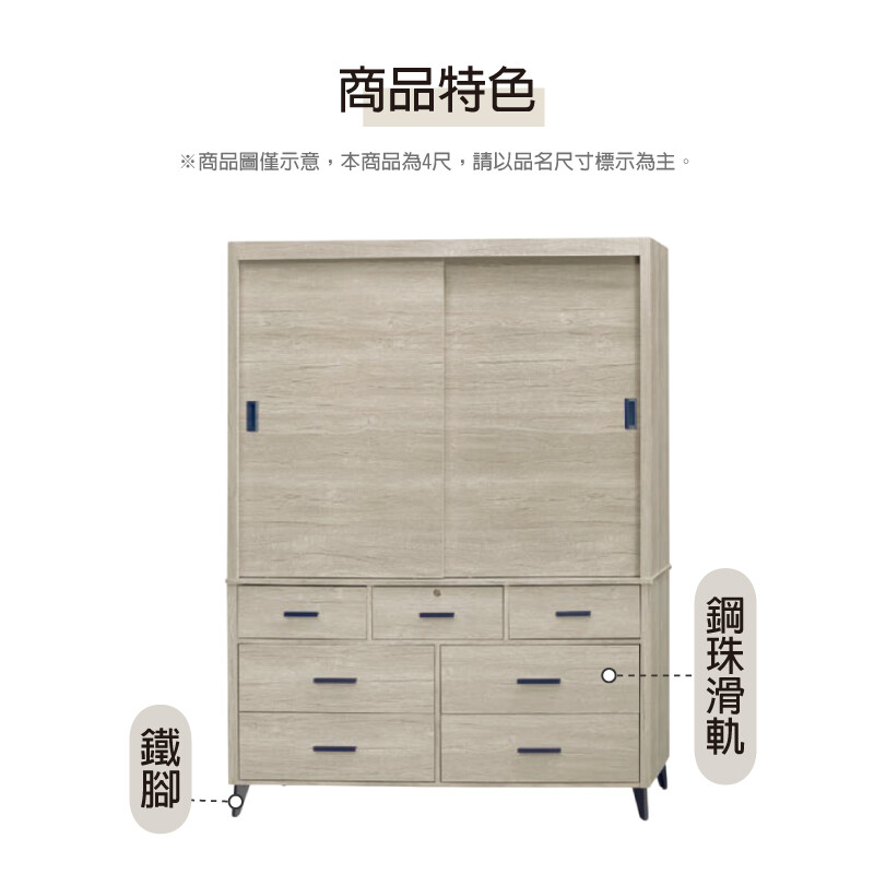 《奈斯家具Nice》189-04-HV 淺灰橡4×7尺拉門衣櫃/衣櫥 /11#