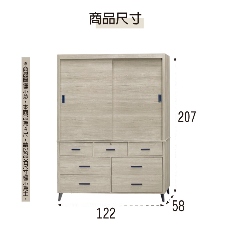 尺寸寬122×深58×高207公分