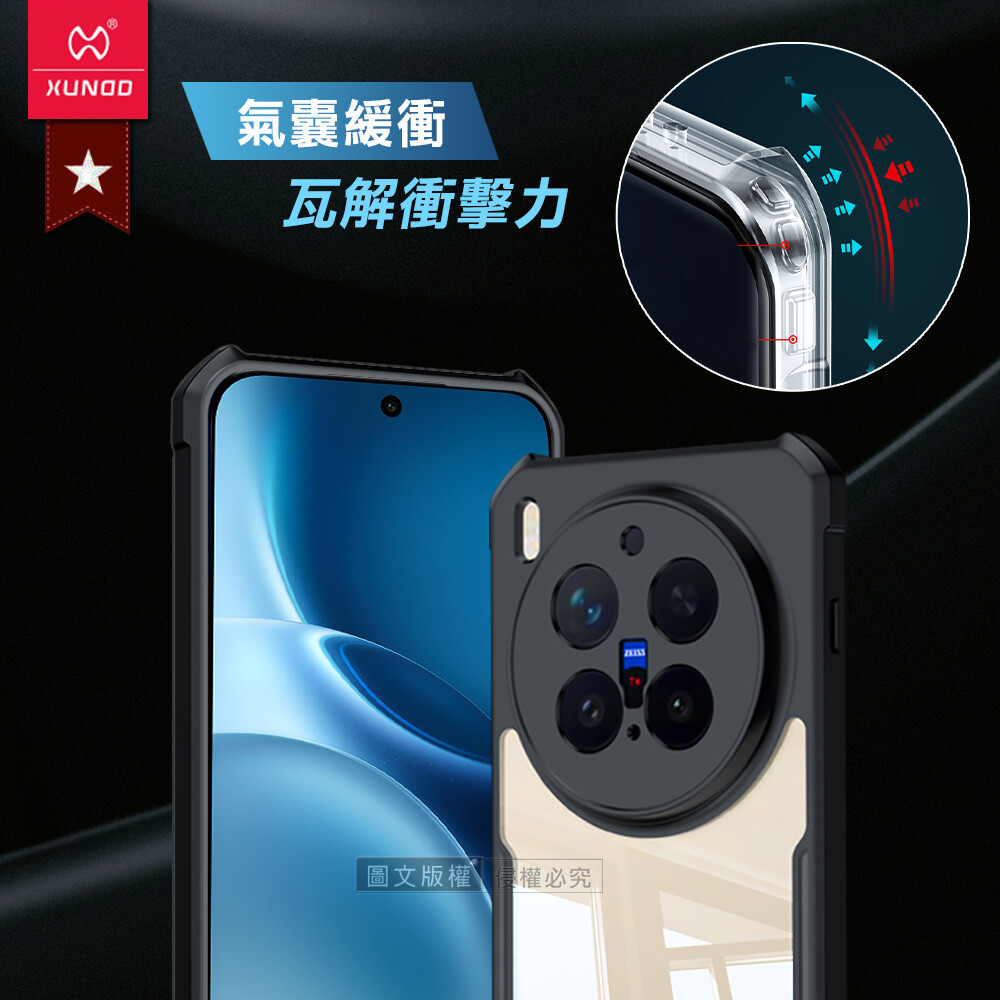 【XUNDD】軍事防摔 vivo X300 Pro 鏡頭全包覆 清透保護殼 手機殼(夜幕黑)