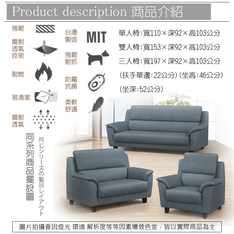 扶手單邊:22公分,坐高:46公分,坐深:52公分