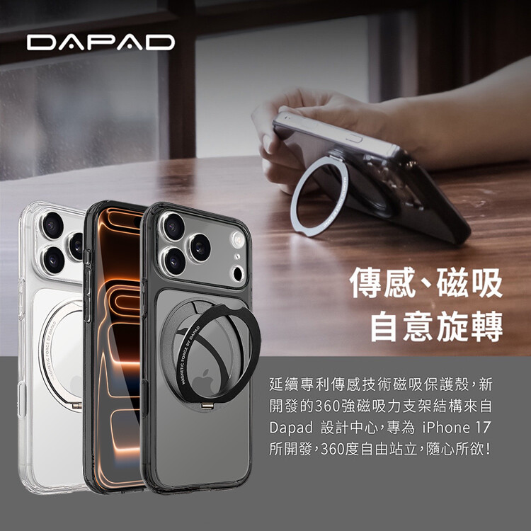 DAPAD iPhone 17 Pro Max 6.9 專利傳感技術磁吸360度支架保護殼-附相機電子按鍵